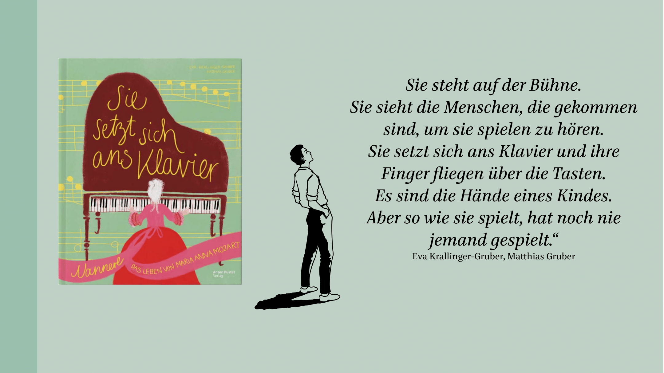 Das Autorenpaar Eva Krallinger-Gruber (bekannt als „Fräulein Flora“) und Matthias Gruber lesen aus ihrem neu erschienen Kinderbuch „Sie setzt sich ans Klavier. Nannerl – Das Leben von Maria Anna Mozart“ Musiker:innen des Residenz-Ensembles spielen Kompositionen von Wolfgang Amadé und Maria Anna Mozart. Außerdem: Bildprojektionen aus dem Buch.