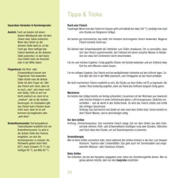 Wer hat denn schon einmal Salzburger Nockerl, Pizza oder Kürbis-Soufflés auf dem Grill zubereitet? Viele ausgefallene Rezepte werden durch saisonale Spezialitäten – vom Frühling bis zum Winter – ergänzt, denn Grillen hat immer Saison! Alle Gerichte, wie ausgefallen sie auch erscheinen mögen, werden aus leicht zu beschaffenden und regionalen Zutaten bereitet, auf exotischen Schnickschnack wird verzichtet. Dafür liefern die zahlreichen Step-by-step-Abbildungen wertvolle Hilfestellung bei den einzelnen Arbeitsschritten.