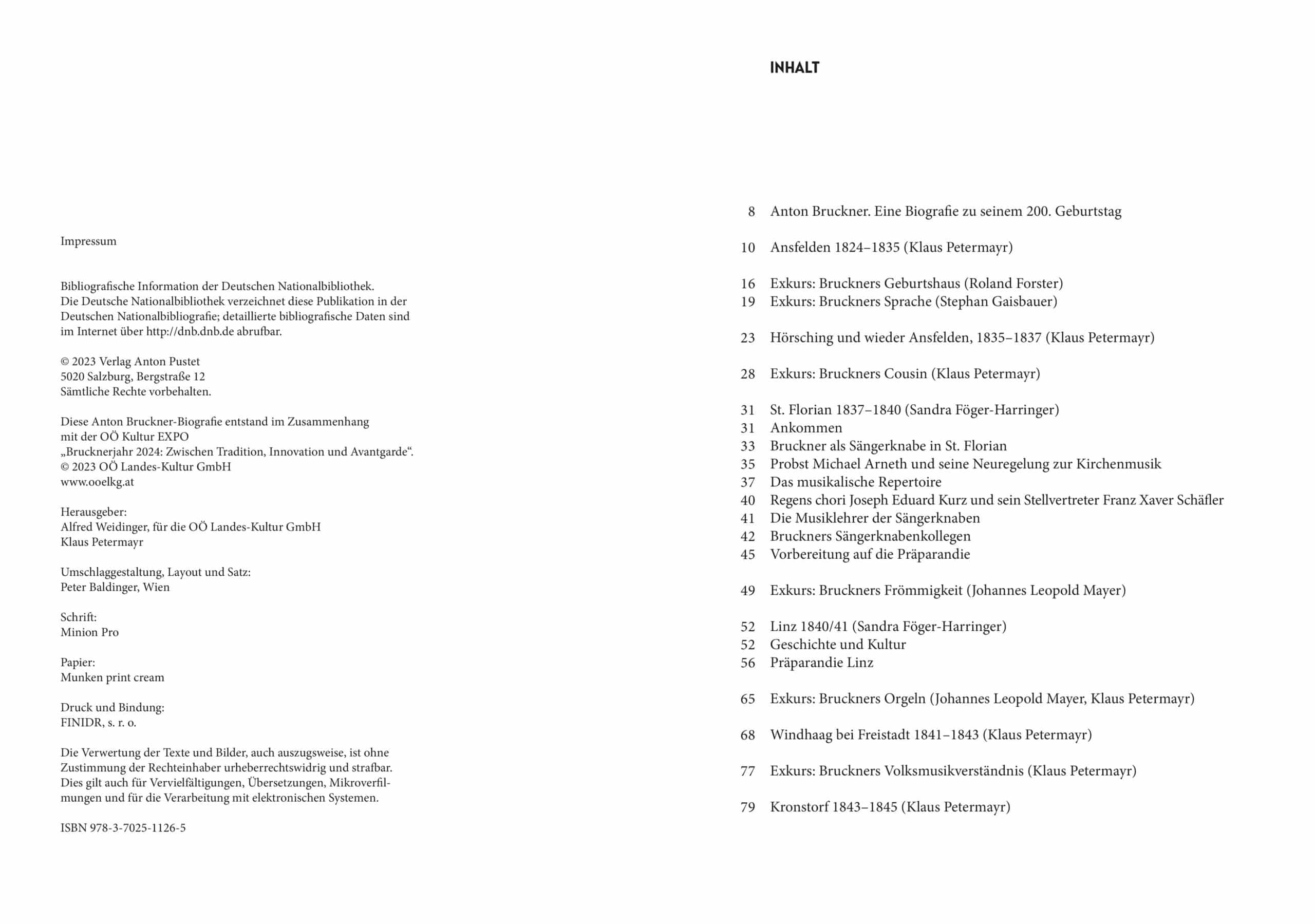 Das vorliegende Buch basiert auf Fakten und Dokumenten – und macht Anton Bruckners Biografie, frei von unnötigem Ballast, einem modernen Publikum zugänglich. Basierend auf seinen verschiedenen Lebensstationen wird ein Bild entworfen, welches den genialen Komponisten, in dem auch Fehler und Schwächen schlummerten, in seinem sozialen Umfeld zeigt und seine kreativen Schöpfungen in den Fokus der Betrachtung rückt.